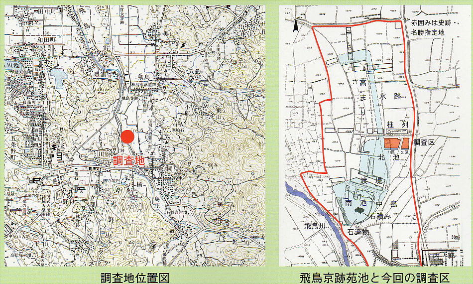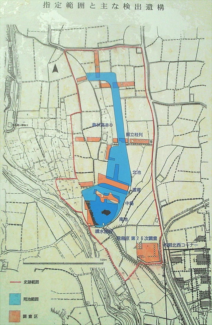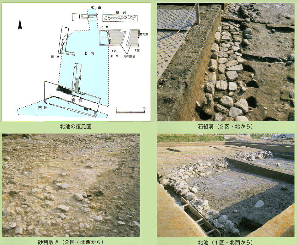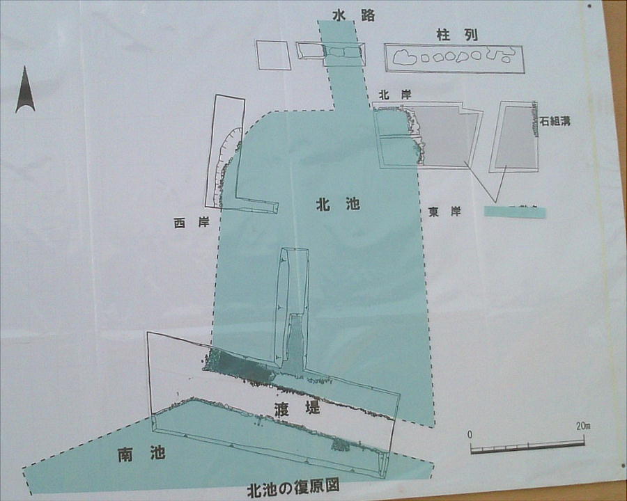「飛鳥京の北西に一大苑地があって、南池と北池に分かれています。間には堤防(渡堤)があります。北池からさらに北へ水路が