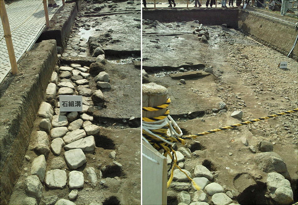 ある。この「出水の酒船石」と名付けられた石造物は、まさしく苑地の池に水を流れ落とす仕掛けの一部だったのだ。これは湧き