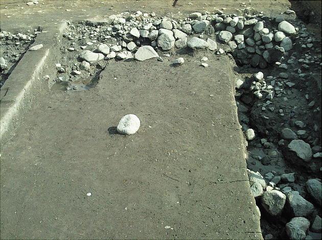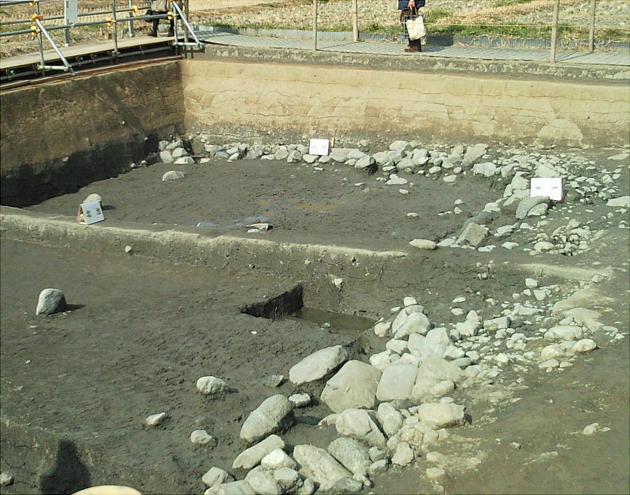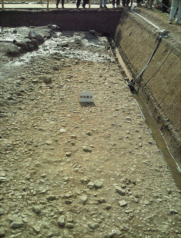 1400年前の石組み、砂利敷きだ! 飛鳥時代の人間があの石を並べたのだと思うと、自分がここに立っているのが不思議な