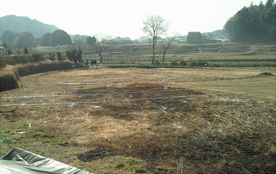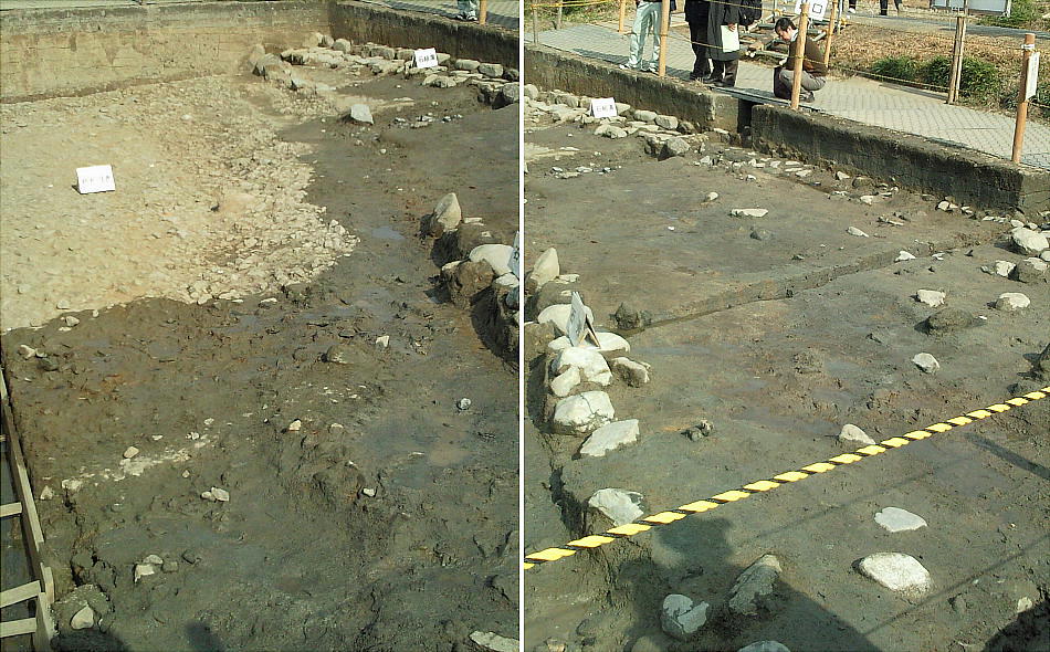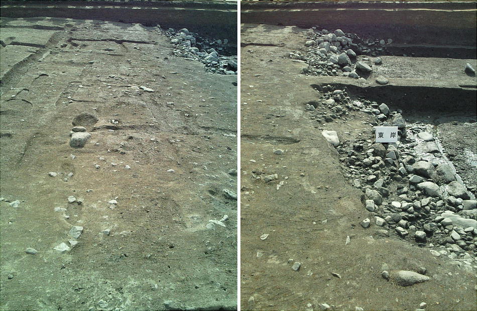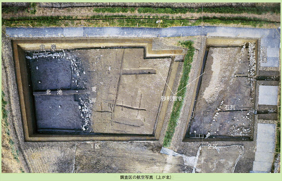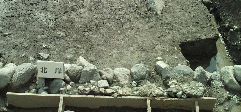 伸びていて、それは途中で西側へ直角に曲がっているのが確認されています。今回の調査は、北池の東岸、北岸の位置を確認する