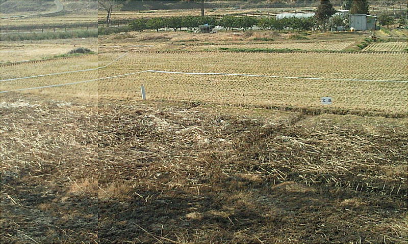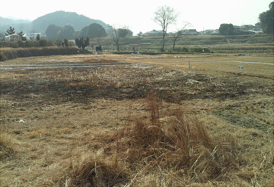 北池の全体像。中央の黒い部分が北池の底に当たるようで、あそこらから水が湧き出していたのだ。