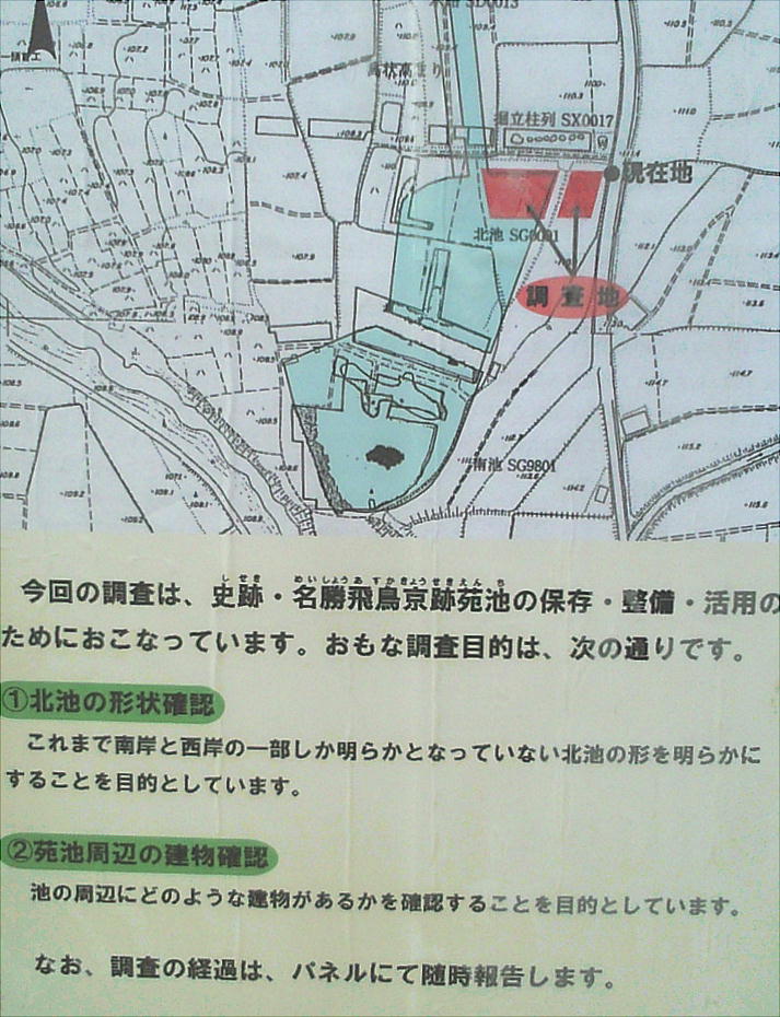 10年前の説明会を聞きに来た時、勿論「北池」の存在などはわからなかったので、「南池」の水はすぐ側の飛鳥川から引いてきて