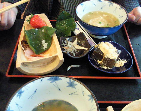昔の例会で「飛鳥鍋」を食べた「めんどや」さんで、今日は「にゅうめん定食」の昼食。三輪そうめんの暖かい奴でうまかった。