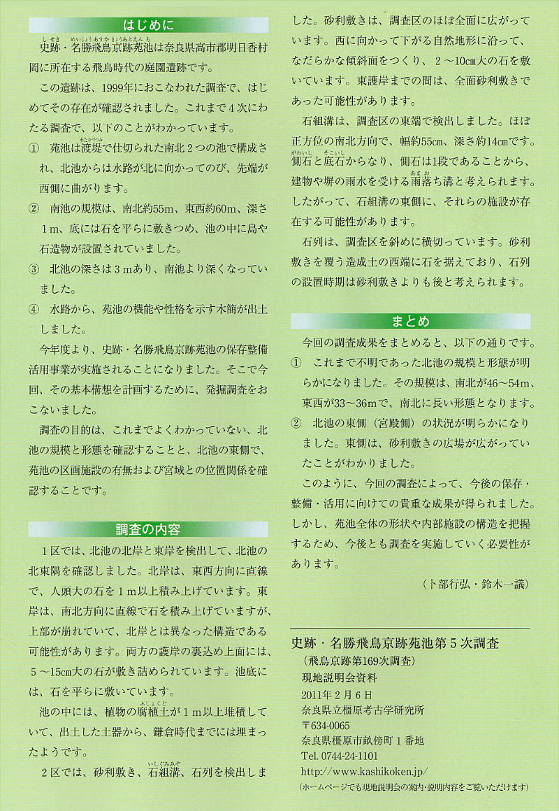 邪馬台国大研究ホームページ / 遺跡めぐり / 飛鳥京跡苑池遺構・現地説明会2