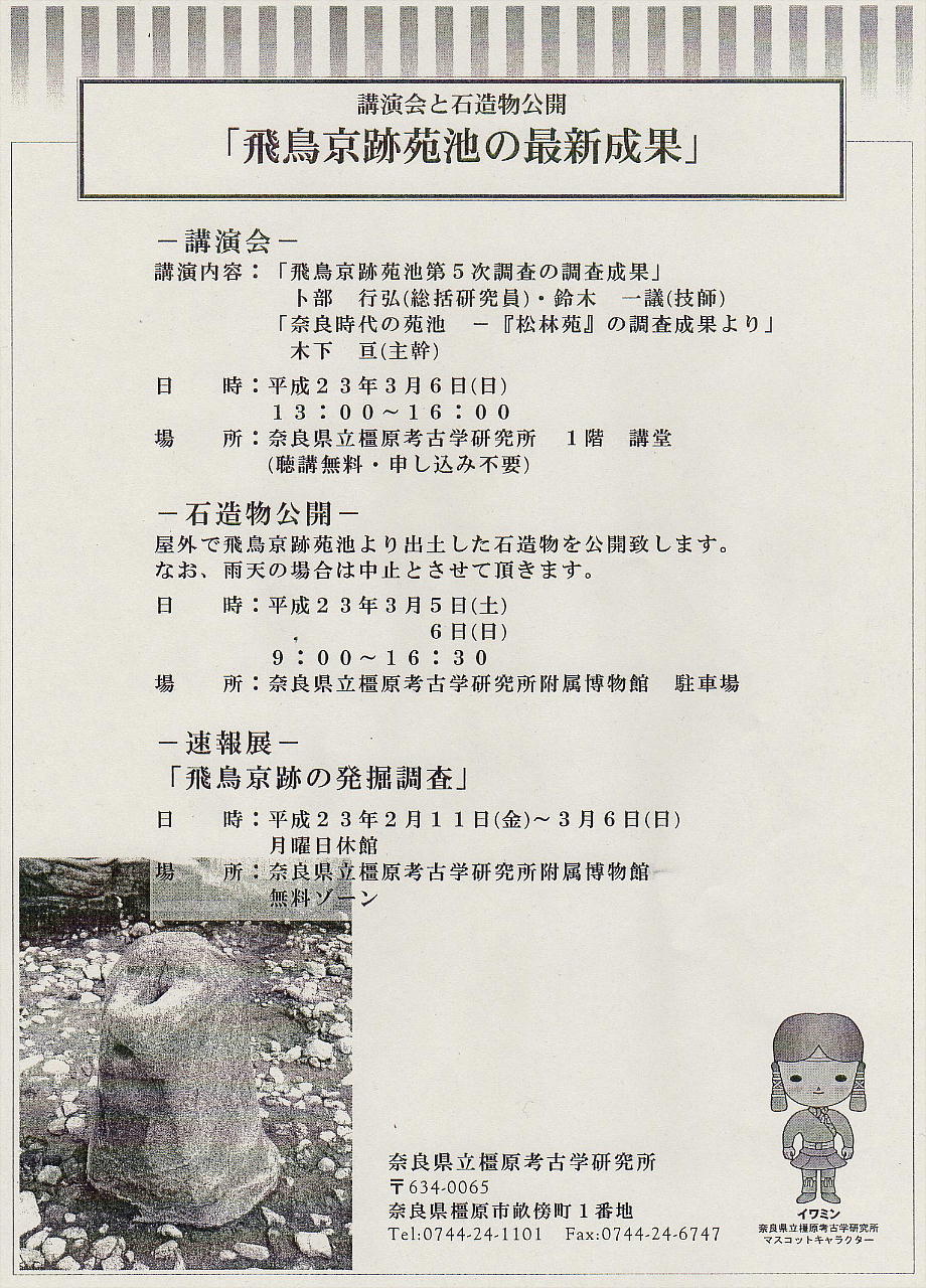 全然少ない見学者だ。飛鳥の現地説明会は、大抵2時間くらい並ぶんだが、「苑地」とかは地味なのかねぇ。