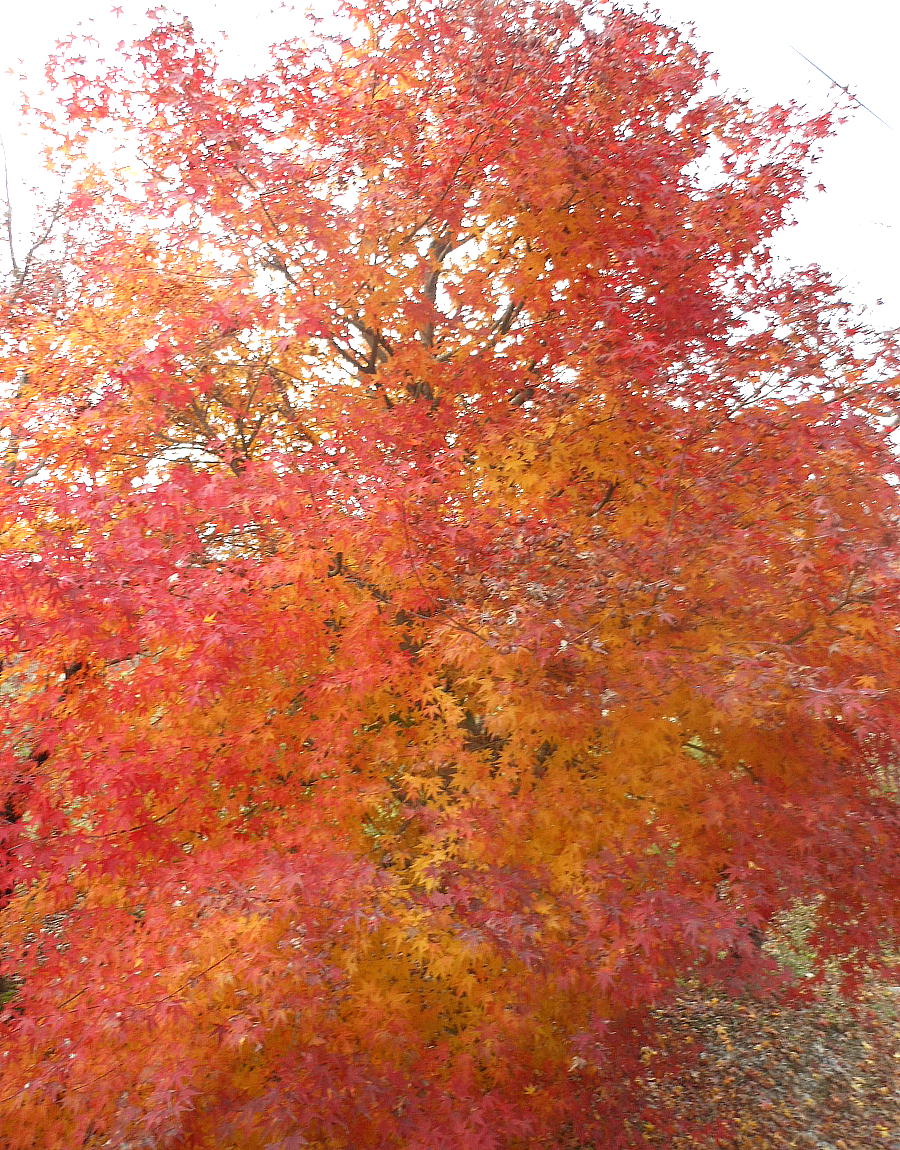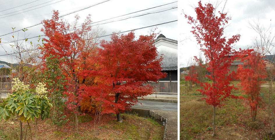 水落遺跡を過ぎ明日香村の集落へ入ると、その入り口に真っ赤な紅葉が。もう12月に入ったというのに鮮やかな紅葉だ.