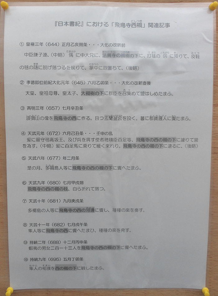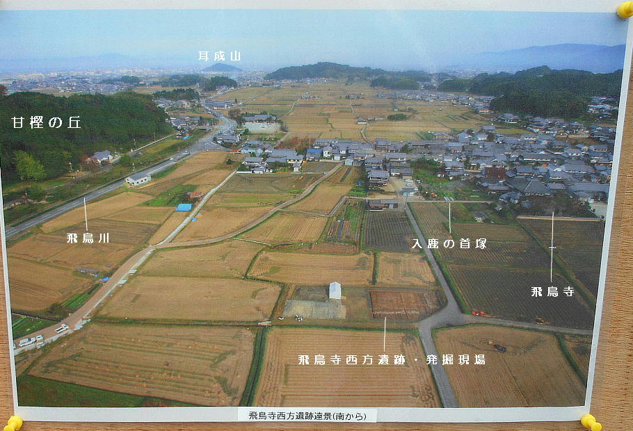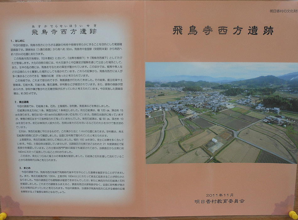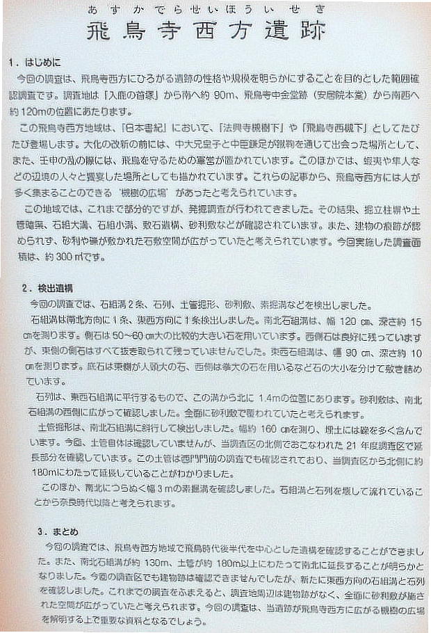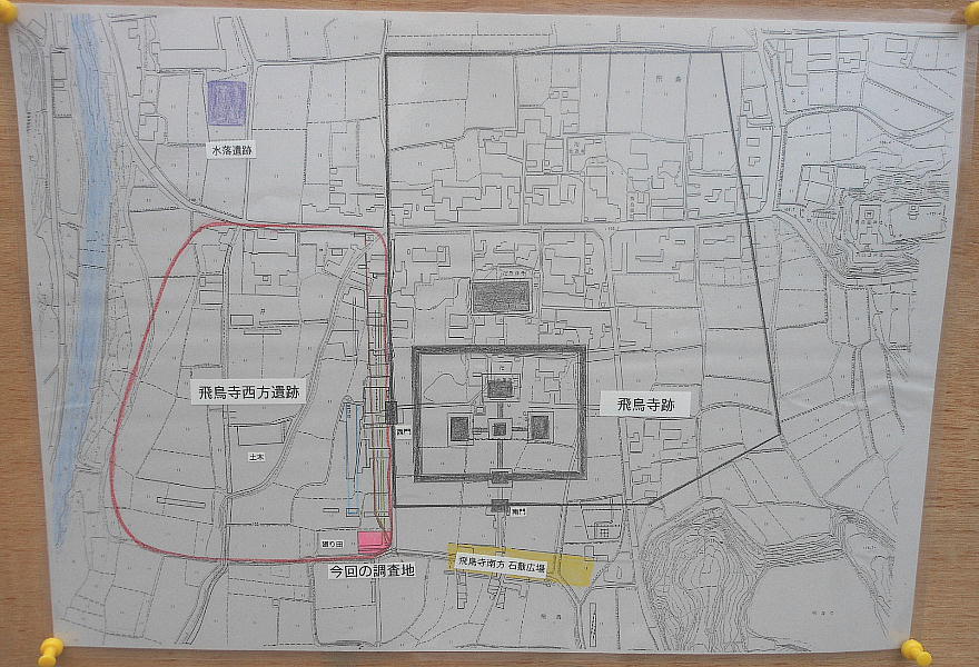 と思ったら、どうやらここは違う発掘現場らしい。「飛鳥寺西方遺跡」と説明がある。同時に何カ所も掘ってるんだ。
