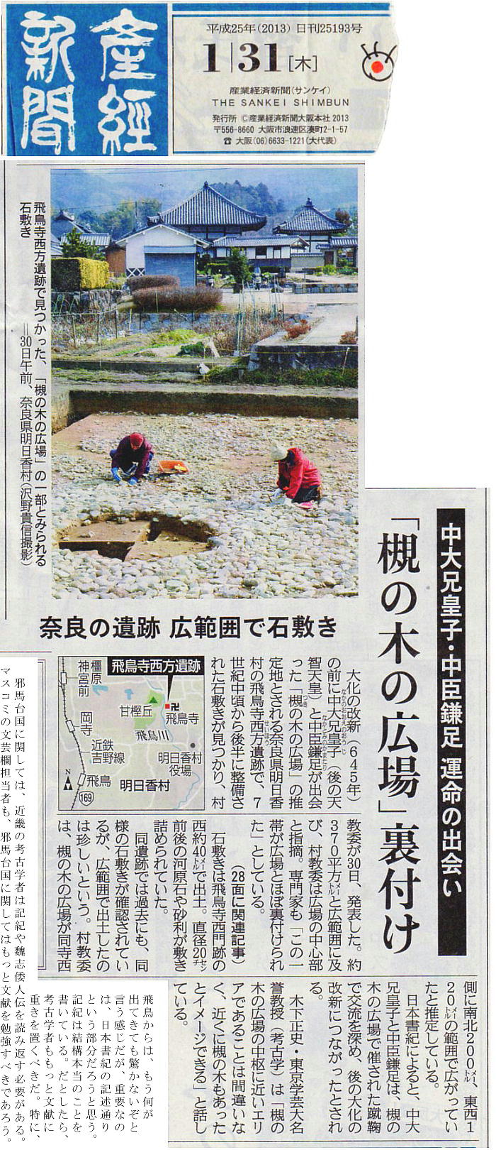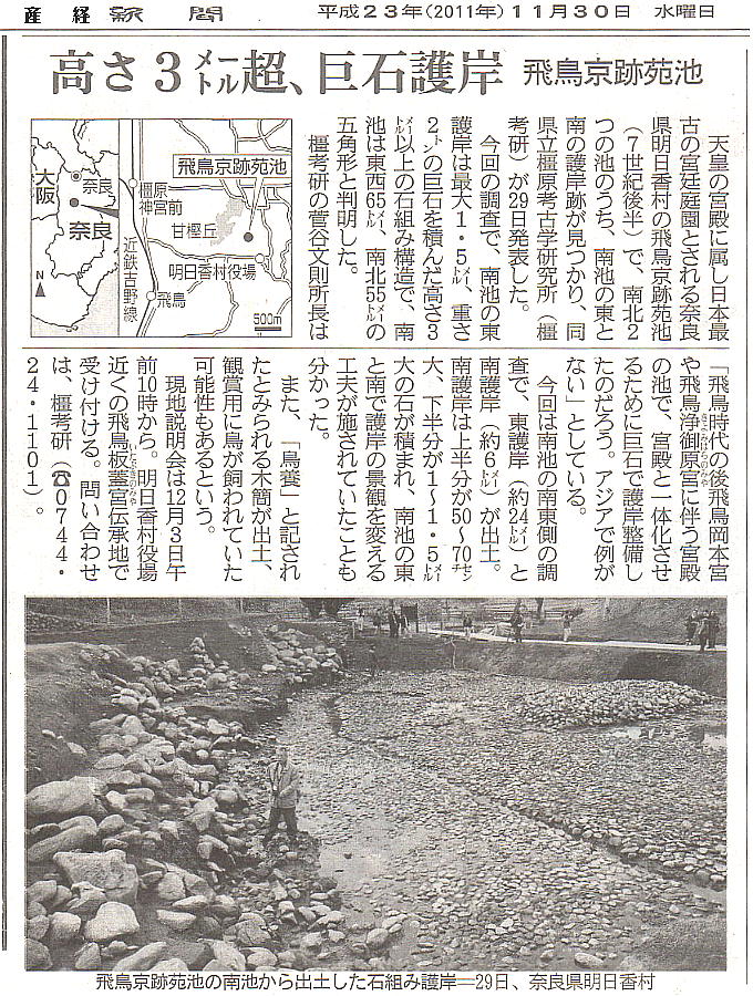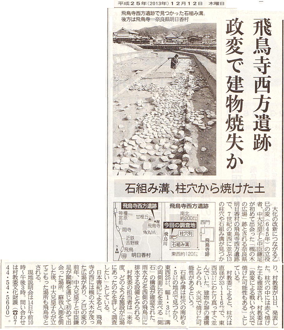 まるまる1年後に、以下の様な新聞記事が出た。ズーッと掘っていたものと見える。しかし、飛鳥は掘れば何かがでてくるね。