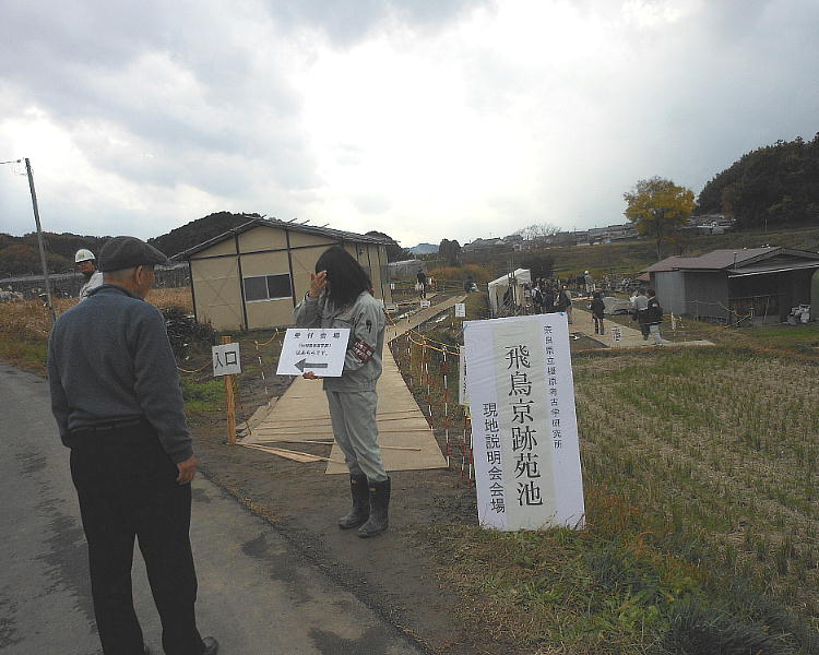 ありがたいけどね。今回はどこを掘ったのかなと出かけていったら、なんと飛鳥京跡苑池遺構の、最初の発掘現場(第一次)だった。