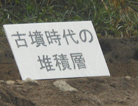 地表に近いところに古墳時代の地層があった。これを掘り下げてこの苑地を造ったんやな。