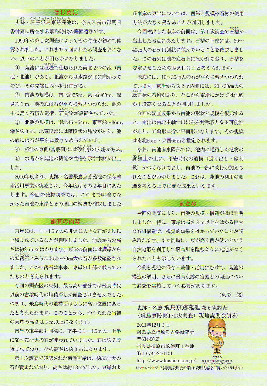 邪馬台国大研究ホームページ/遺跡めぐり/飛鳥京跡苑池遺構・現地説明会3