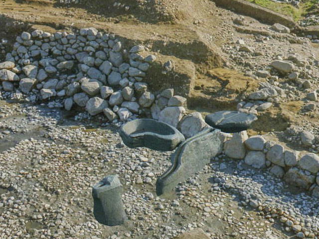 一、導水施設から流れてきた水は、石造物の「石槽」と呼ばれる石の桶にたまるのだが、そこからその手前の噴水施設と思われる石