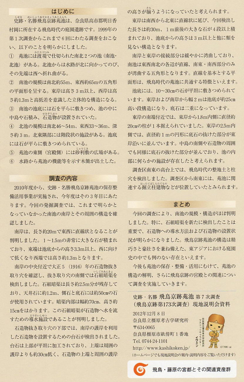 邪馬台国大研究ホームページ/遺跡めぐり/飛鳥京跡苑池遺構・現地説明会3
