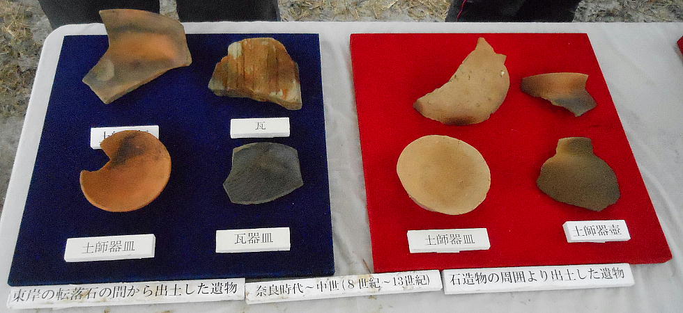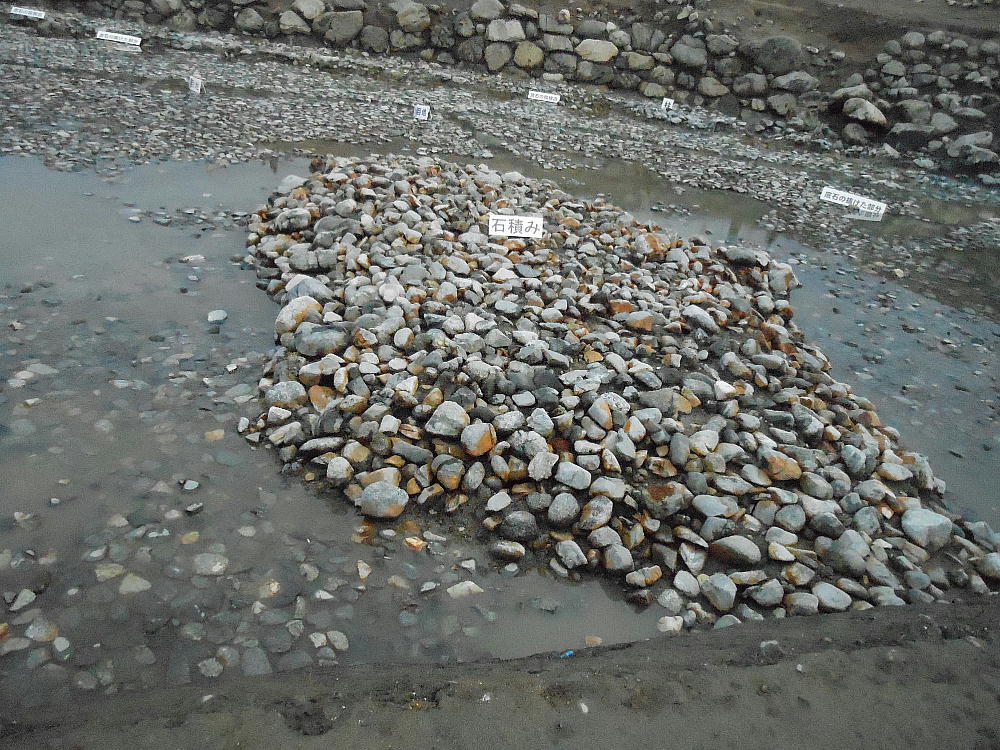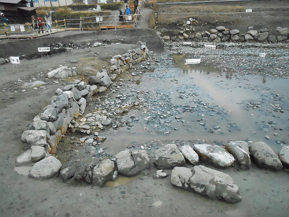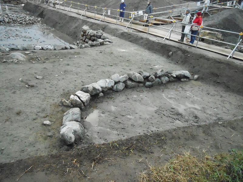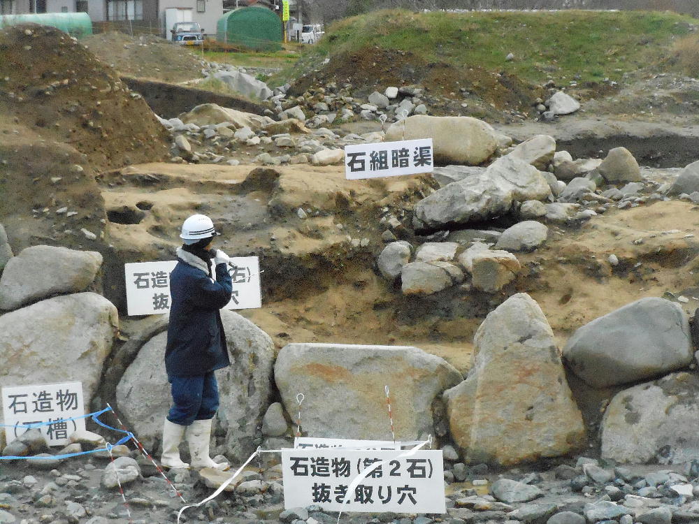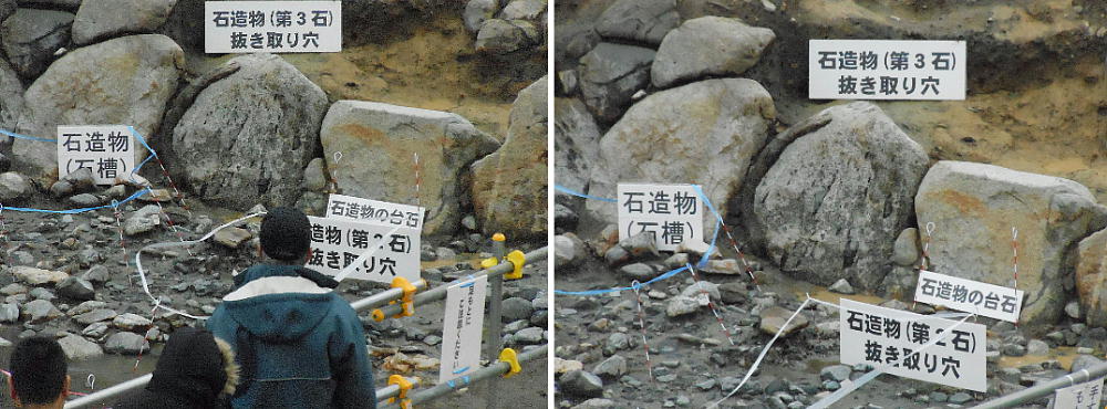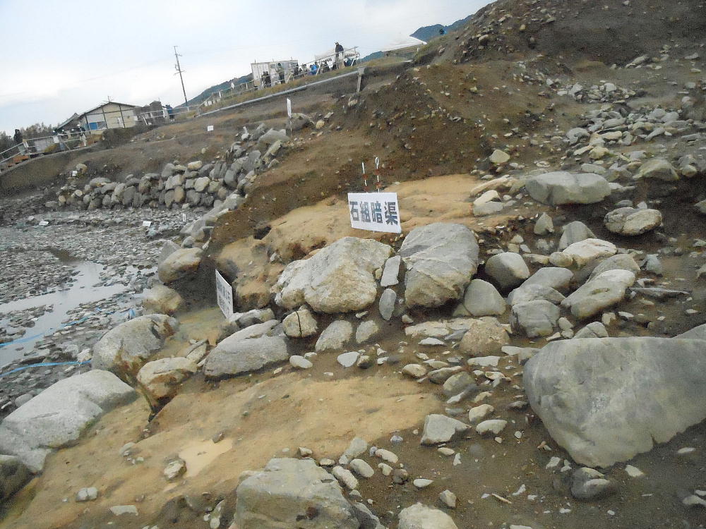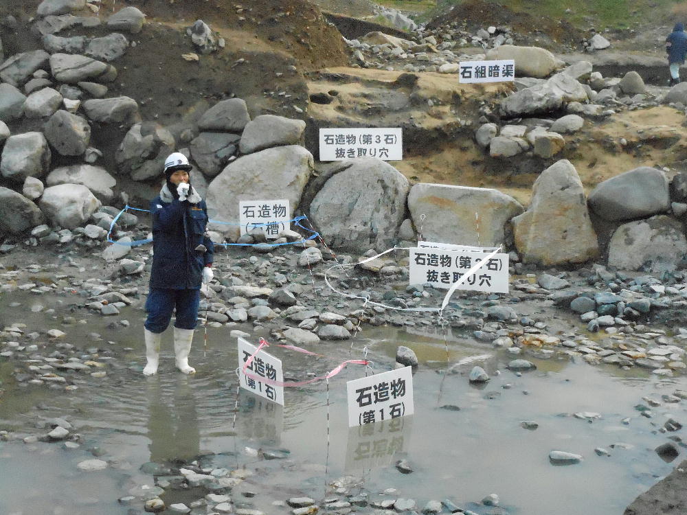 上下が今回の目玉。石造物群へ水を導いていた用水路施設「石組み暗渠」である。新聞のNewsを飾っていたのはここの写真だ。