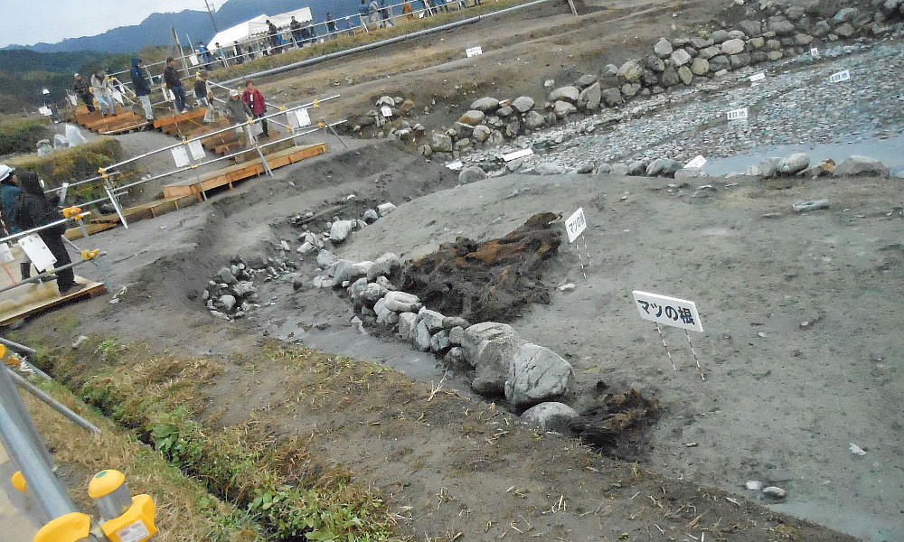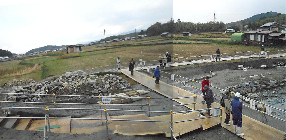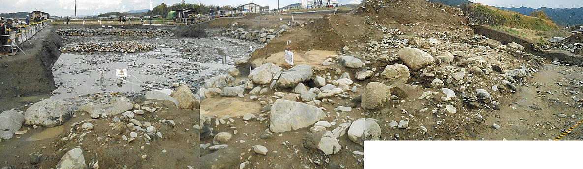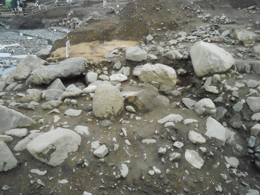 「石の並びがめちゃくちゃですし、少し南へ洪水の跡のような痕跡があるんですよね」