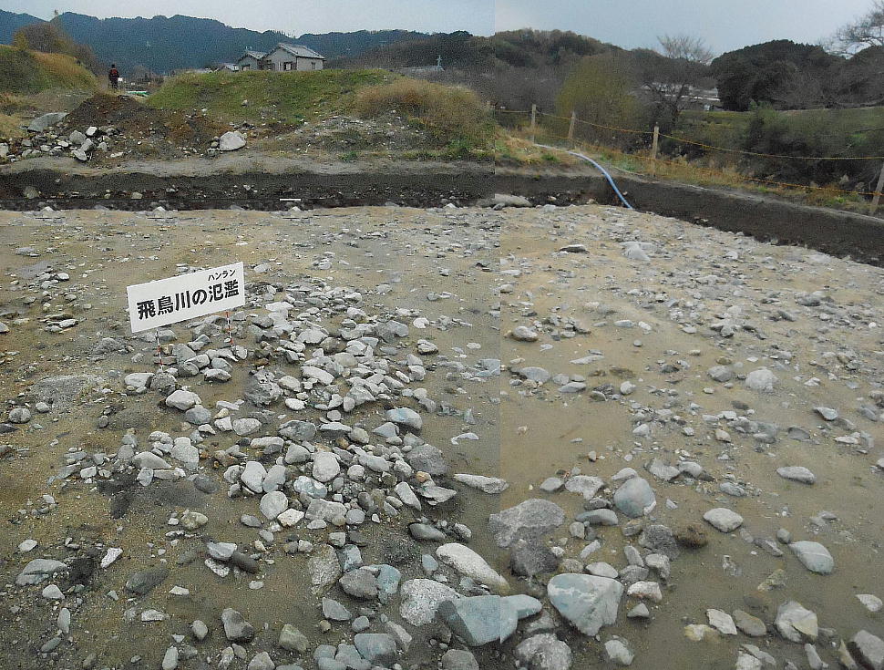 南の端に「飛鳥川の氾濫」とした石畳があった。