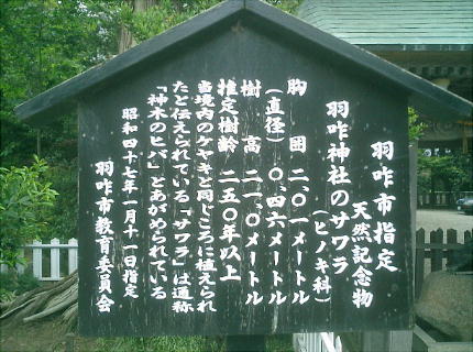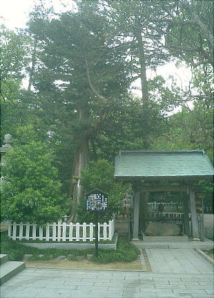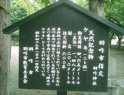 明治42年、頂上の小祠を羽咋神社に合祀したのち、頂上にあったシイ・タブの小樹数株を移植したものが今ここに見えてい
