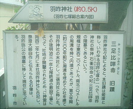 現在、案内板には「三足比当ス(みたらしひめのみこと)御墓」となっているが、この地方には太古から能登比盗_(のとひ