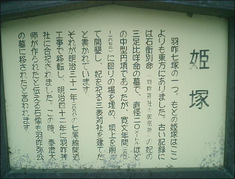 羽咋七塚に関する記述は、この他の伝聞として同じく郡誌(羽咋郡誌:大正6年)に、姫塚の周囲にあった池が埋め立てら