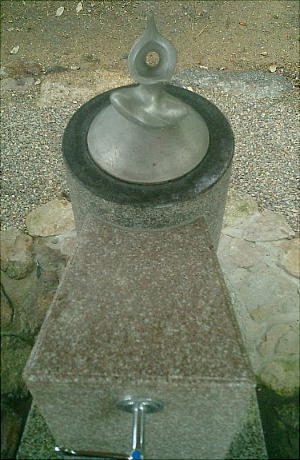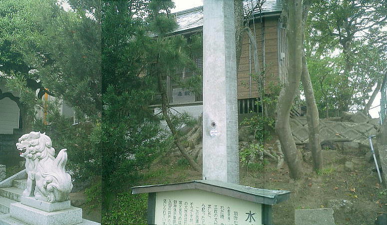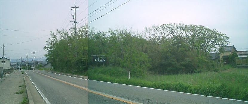 その位置は不明で、「官弊中社昇格願書」には「神社の東ニ町に在り今は田地となっております。」とあって、経25m