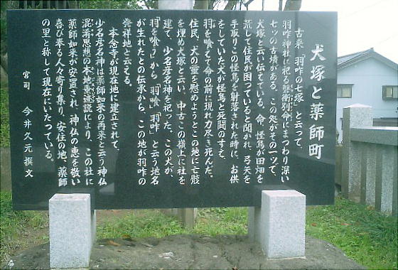 塚也」と記し、羽咋の地名由来とあわせて命名されている。「郡誌」には「薬師塚」として記載されており、「朝雲」
