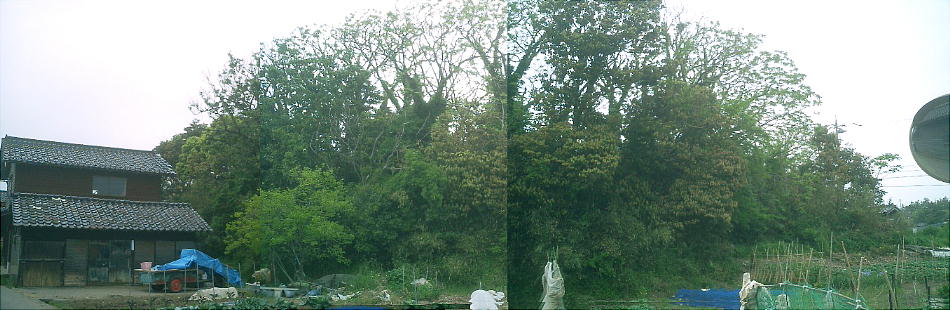 突き当たりの森が「石衝別命」墓で、右手がその子「石城別王」の墓である。