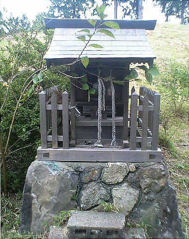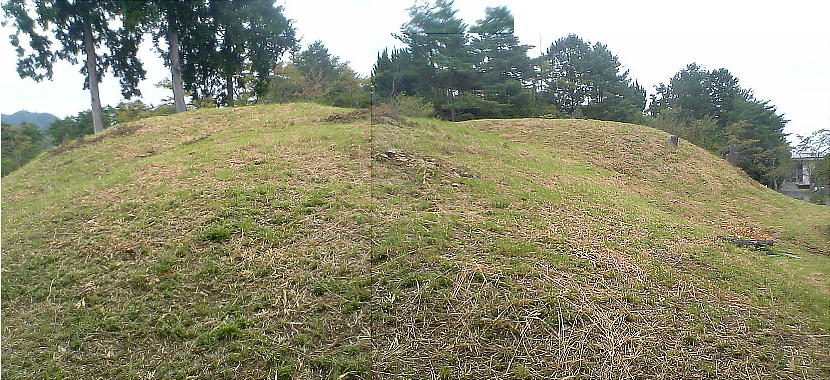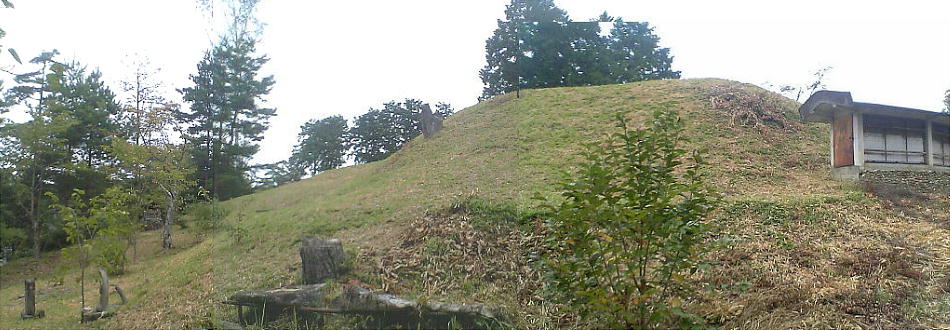 った。見たところは小型の前方後円憤のようだが円墳かもしれない。石棺の一部のようなものが露出していた。三段池の畔にあった。
