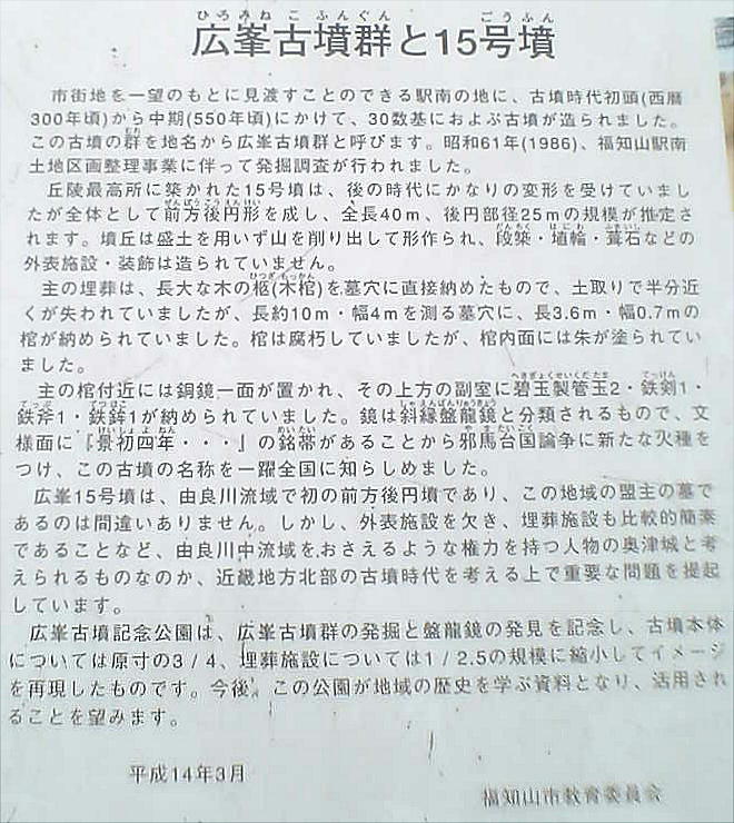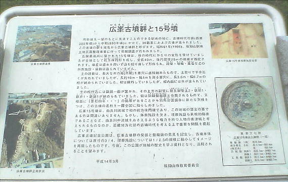 福知山駅南口を南に直進、登り坂の中腹に位置する公園で、ここから発見された広峯古墳群を記念して作られた。広峯古墳群は、