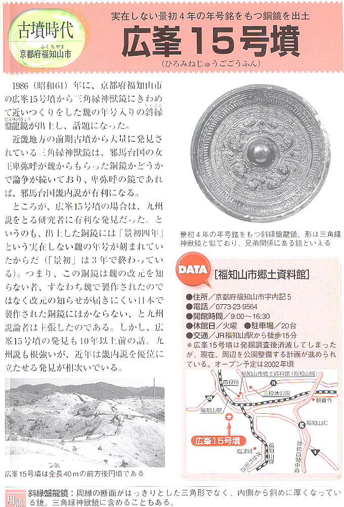終わり)、この鏡は国産品という説も根強く、銘鏡が卑弥呼の鏡かどうかをめぐっては出土から20年以上を経た今も議論の的