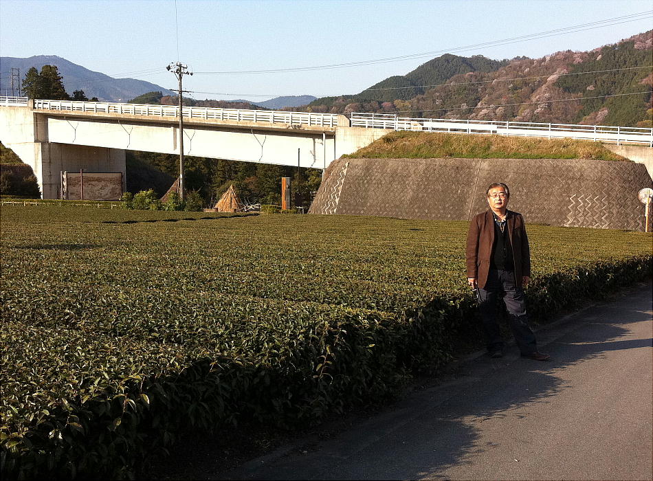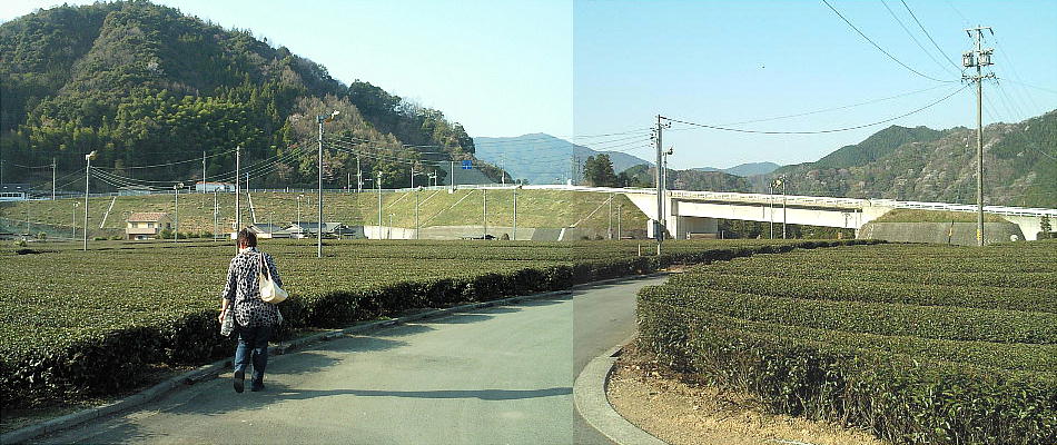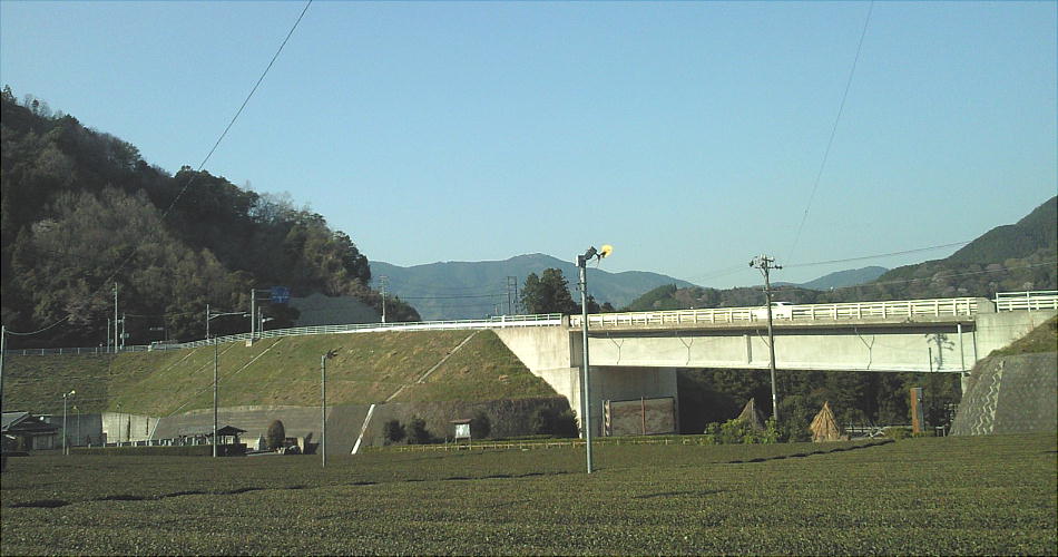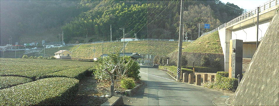 そこから茶畑の中を、道路の高架目指して歩いて行くと、