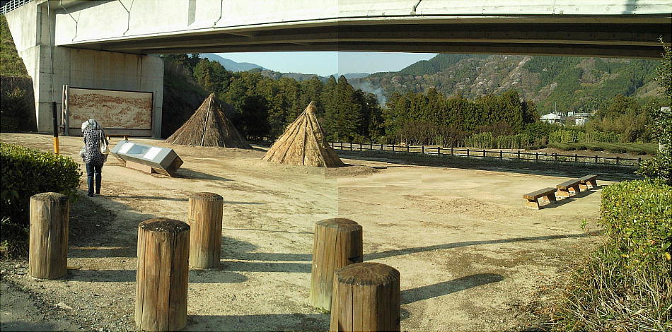 に変更され、高架道路の下の遺跡には縄文人の竪穴住居が復元されている。この付近は櫛田川が大きく蛇行しているところで、