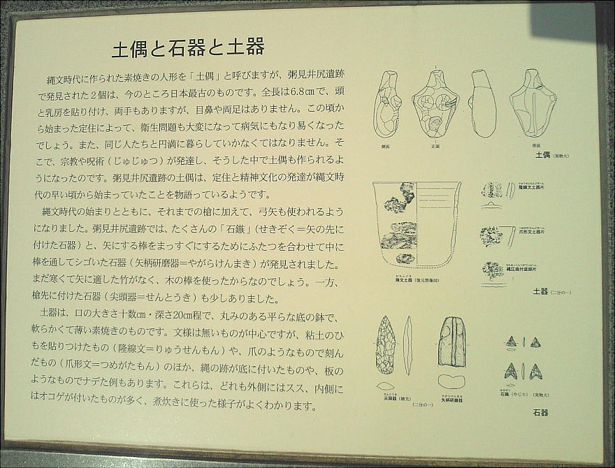 で数例、土偶は三重県の粥見井尻(かゆみいじり)遺跡で2点しか発見されていない。移動生活から定住が始まった時期の暮らし