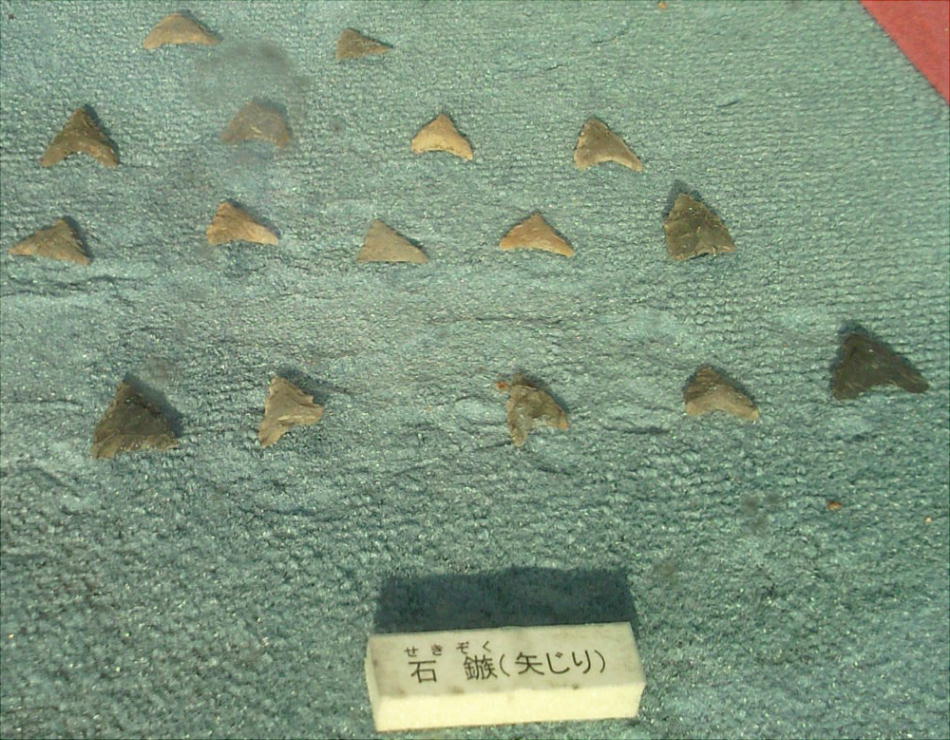 き)と呼ばれる石器が4点発見された。矢じりの材料となるサヌカイトとも呼ばれる讃岐石は、奈良県と大阪府の境にある二上