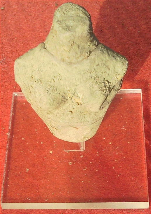 この遺跡を訪ねる気になったのは、女性の上半身を形どった、全長 6.8cm、幅4.2cm、厚さ2.6cmの小さな土偶がここから出土して