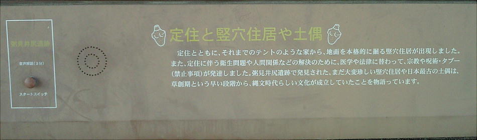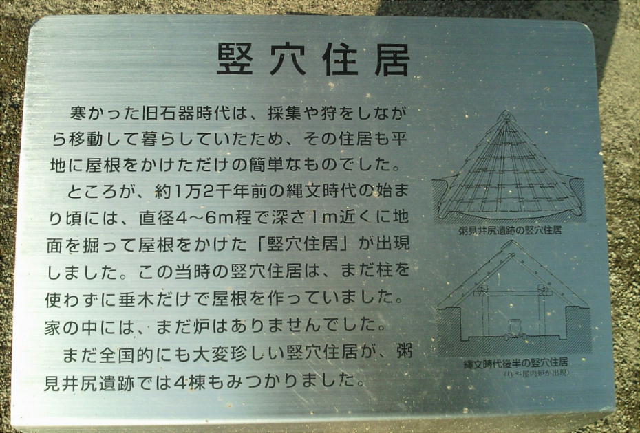 住」が始まったことがうかがえる。また、家の大きさから数人から十数人住んでいたと思われる。このような縄文初期の竪穴住