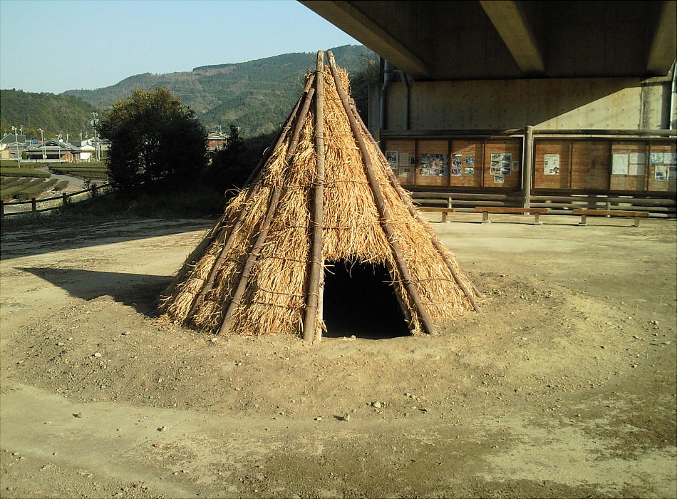 まりの頃には直径4〜6m程度、深さ1m程度地面を掘って、垂木を立てかけ屋根を葺いた住居跡が出現した。