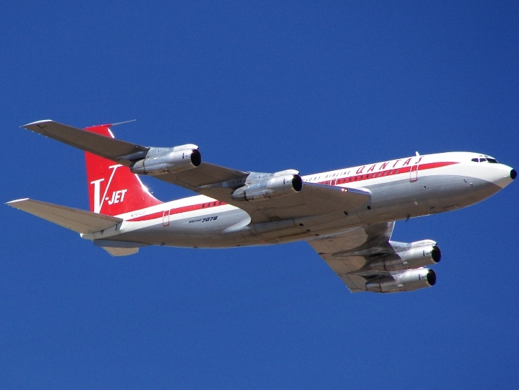 トラボルタが保有するカンタス航空塗装のボーイング707-138B型「Jett Clipper Ella」(N707JT)
