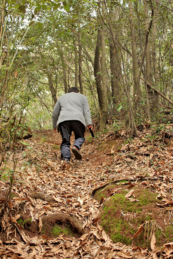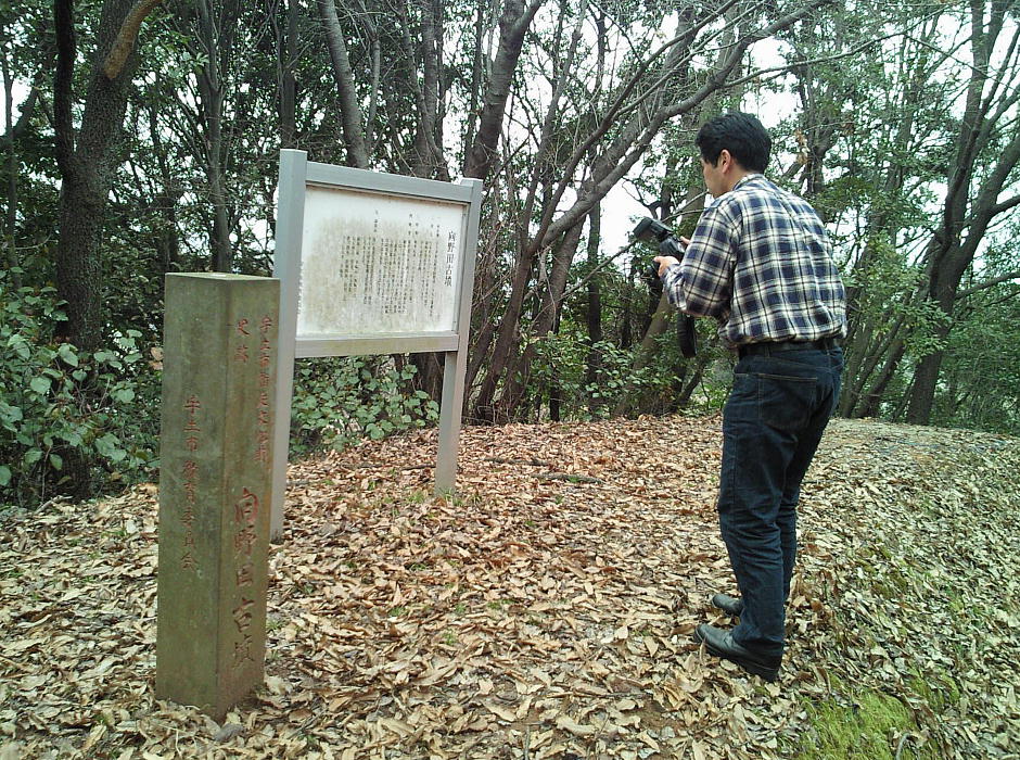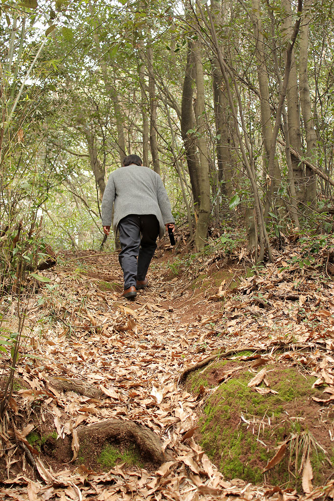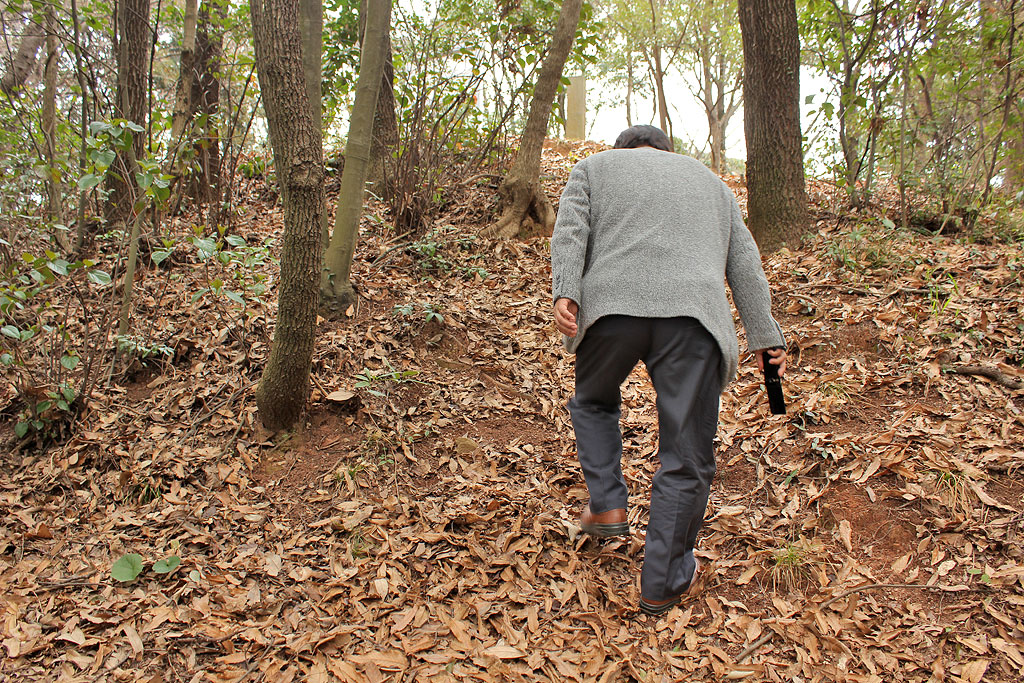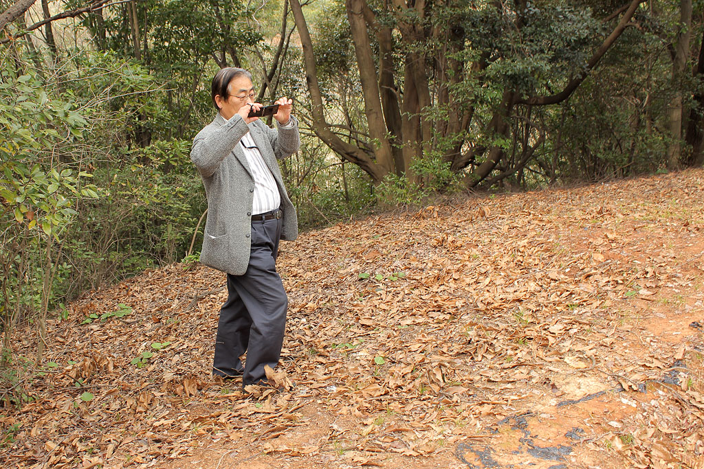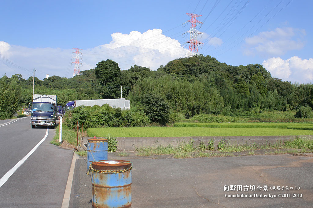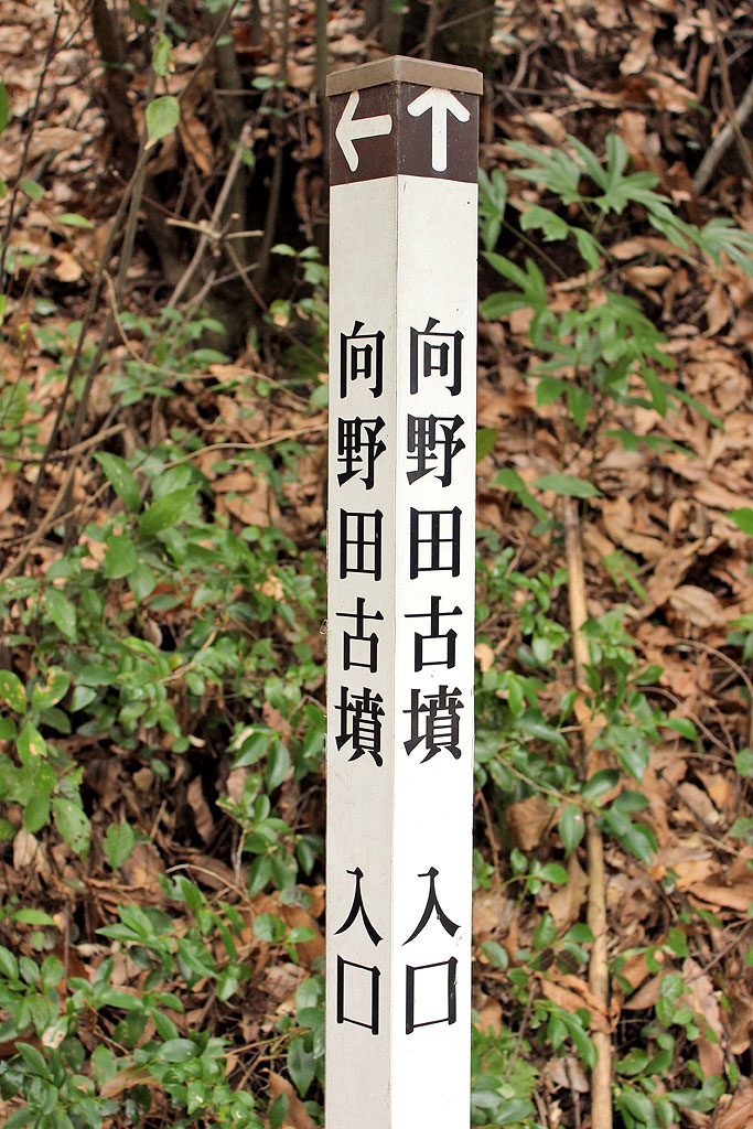 車の右手、これが向野田古墳への(正式な?)入り口です。これだけ重要な古墳なんだから石段くらい造ればいいのに。予算無しかな。