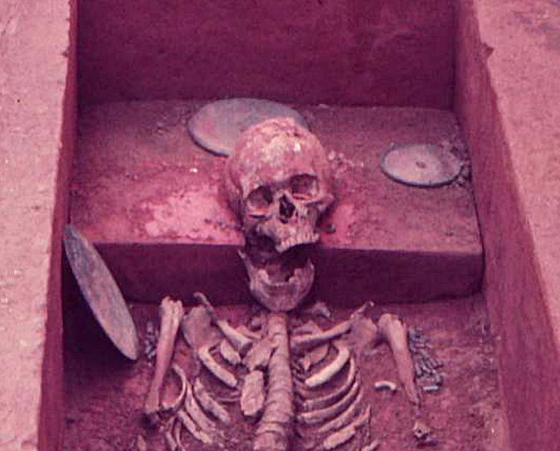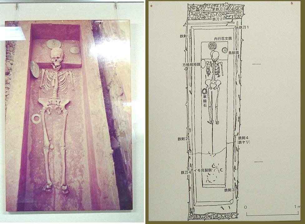 人骨は女性の完全な骨で、副葬品には花模様が入った鏡や勾玉、首飾りなどの装飾品などが入れられており、被葬者は高位の女性だっ