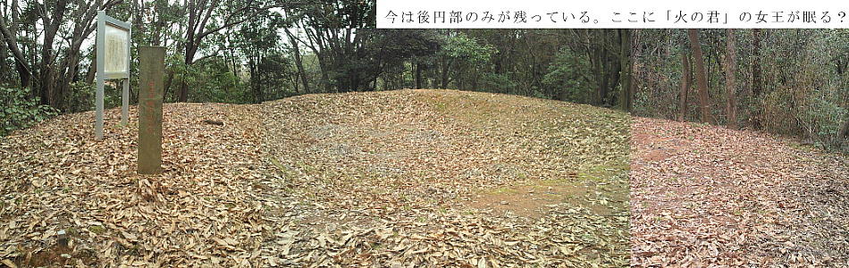宇土市指定史跡(昭和44.10.1)。前方部を北に向ける全長約86メートルの前方後円墳です。しかし,採土工事によって前方部