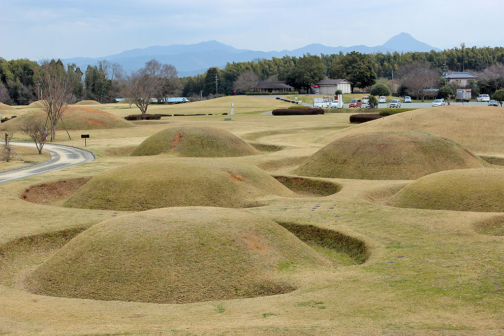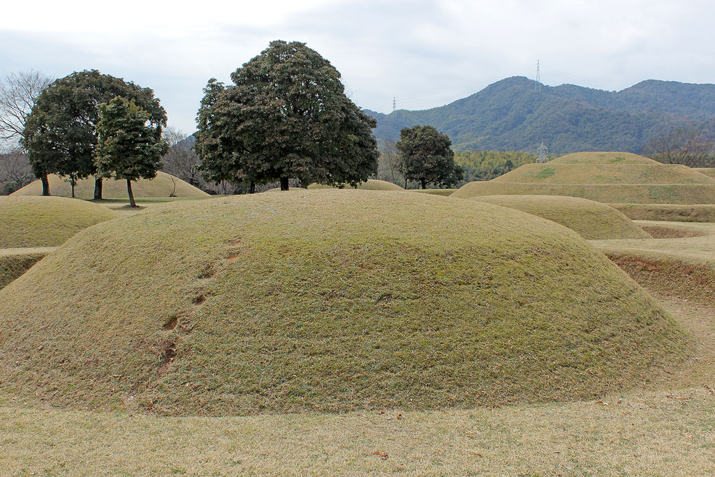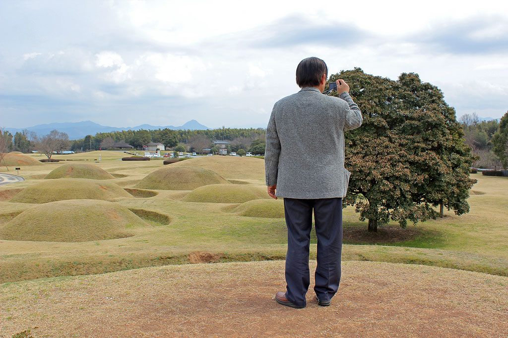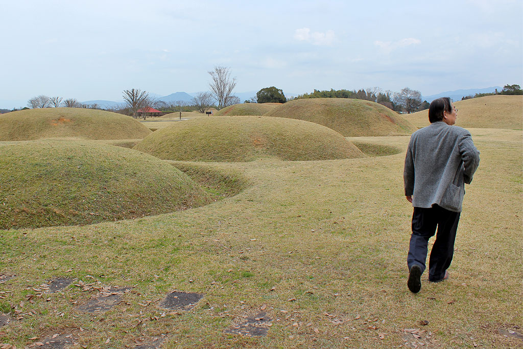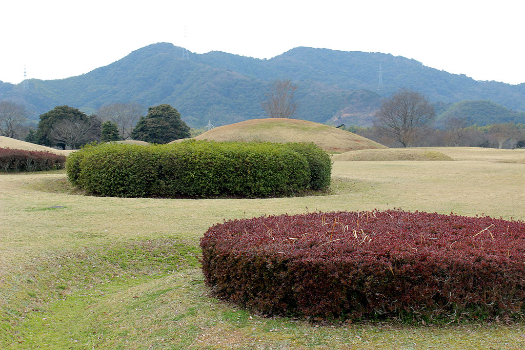 現在、野球場が約5つも入る広々とした古墳群は、77基の復元された古墳や、櫻や紫陽花、コスモスなど季節の花が咲くきれいな古墳