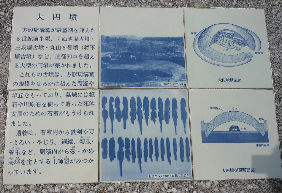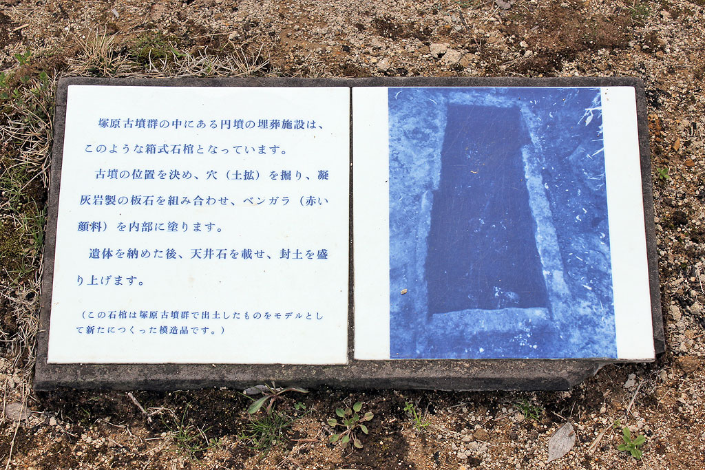 デカい陶器の説明板に塚原古墳群の説明がある。これを一通り読めば、この古墳群についての概要はまずつかめる。