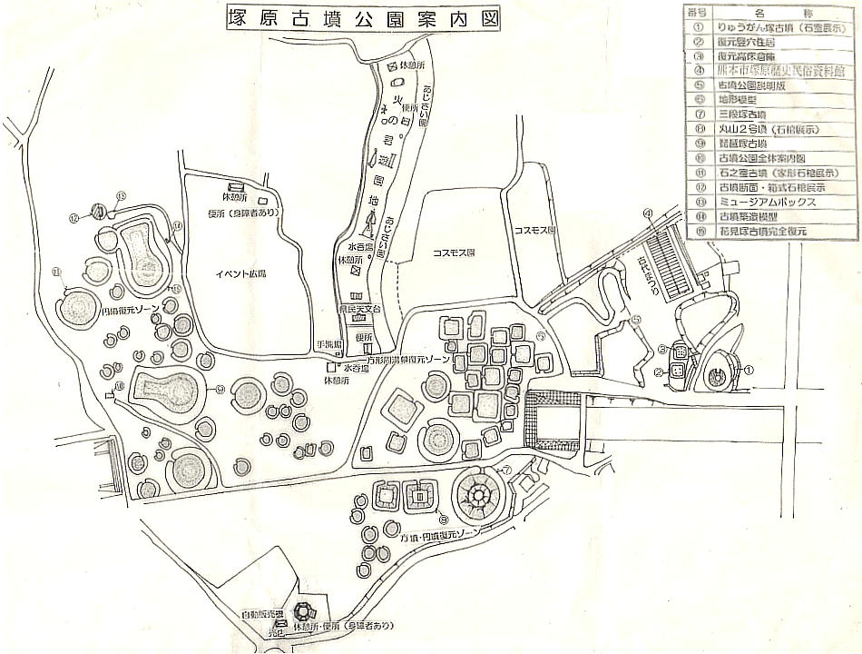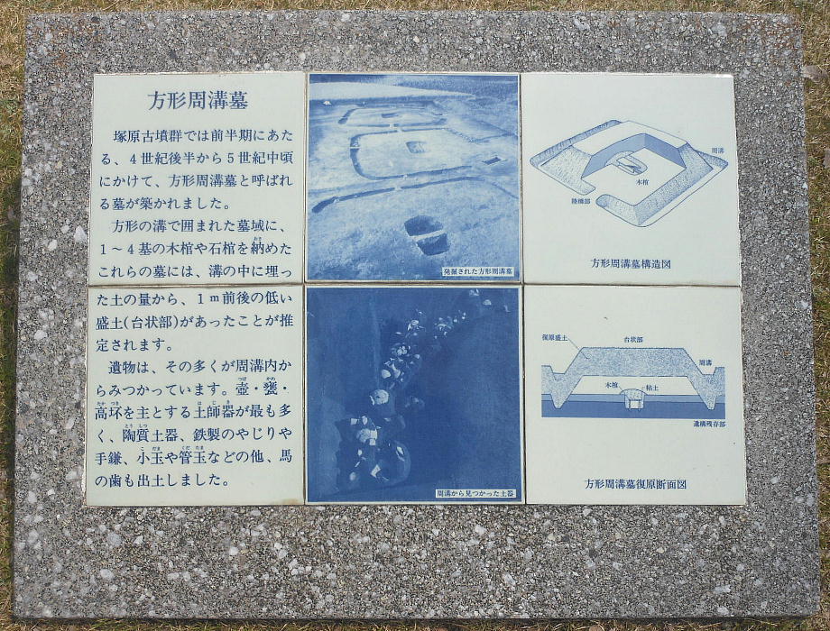 塚原古墳群は、前方後円墳や方形周溝墓、円墳などがあり総数は約 500と推定されます。併設されている歴史民俗資料館には、出土し
