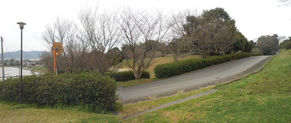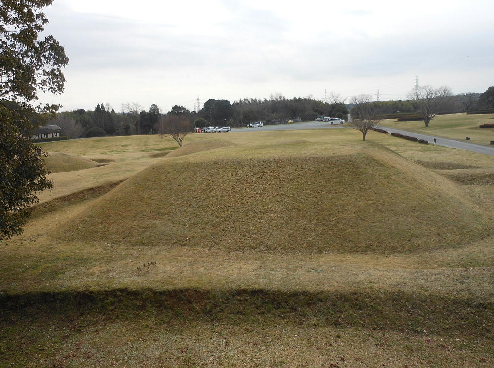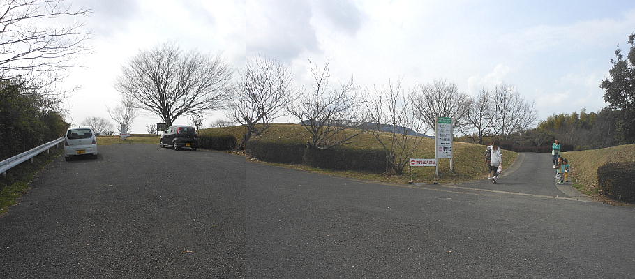 上の写真で一目瞭然なように、この古墳群はその下を高速道路が一直線に貫いている。こんな古墳群は今までに見たことが無い。脇を