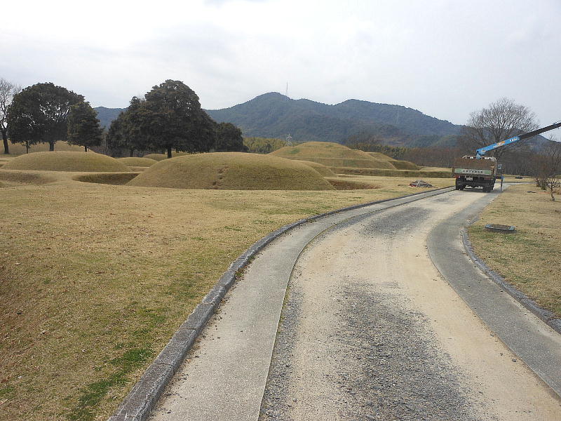 かすめたり、一部古墳の周囲が欠けたりしているものはあったが、古墳群の地下ど真ん中を道路が通っているのだ。全く驚く。しかし