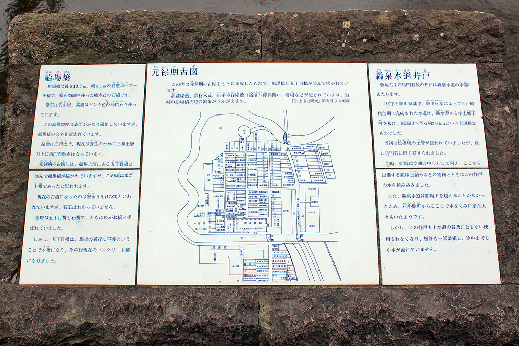 に3本しか残っておらず,最も古いもので樹齢は150〜200年程度と考えられている。馬門ピンク石で造られた船場橋とエノキ