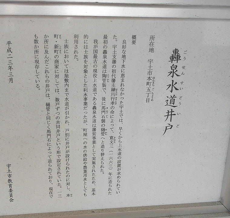 行孝を藩主とする宇土支藩(3万石)が置かれた。細川行孝は城下町の水質を改善するため、轟上水道をつくった。轟上水道に使われた