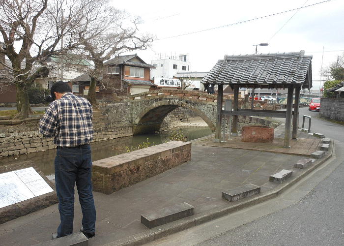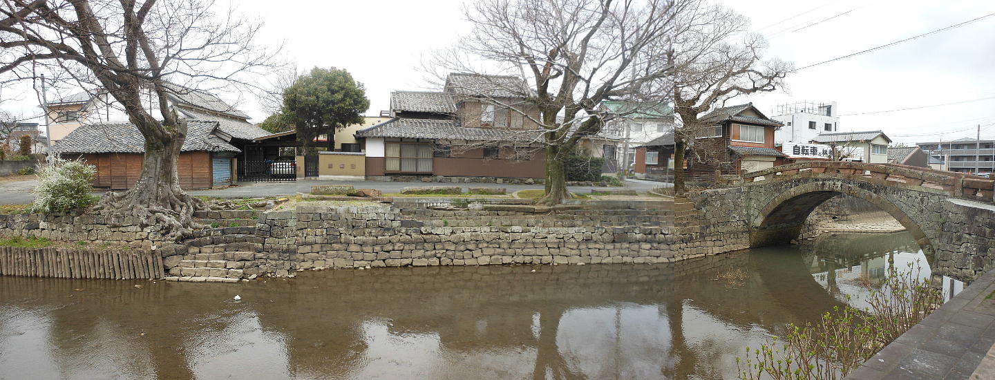上下写真の「船場橋」も、「阿蘇のピンク石」すなわち馬門石で造られている。