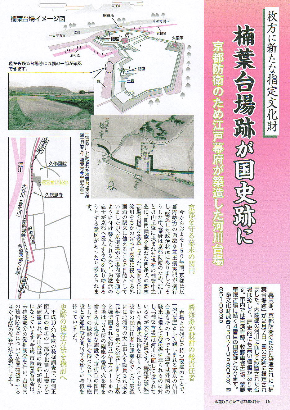 の記事が載るようになった。枚方市教育委員会が台場跡を発掘調査しているという記事や、その現地説明会の案内などが載っており、