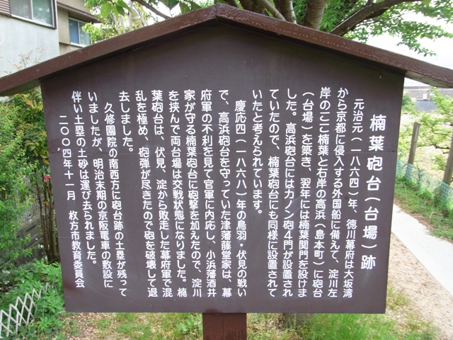 (1865)、淀川左岸、淀川と男山丘陵に挟まれた、現在の楠葉中之芝に台場を造営した。その遺構が「くずは台場跡」である。